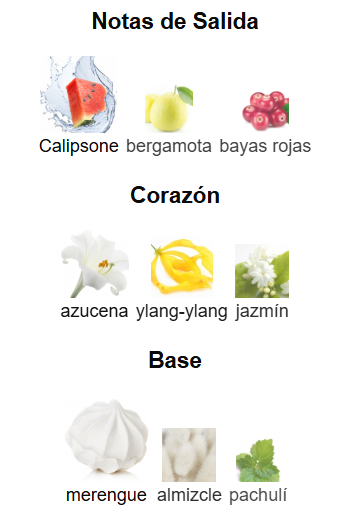 Notas de white flowers, lily, meringue cremosa y brisa marina salada.