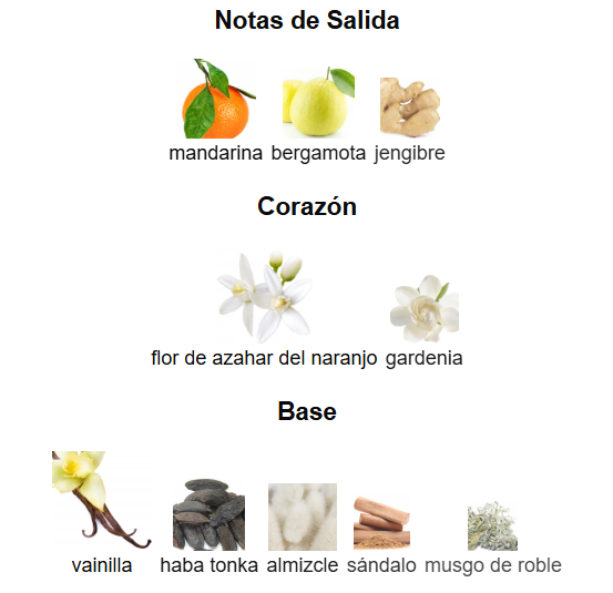 Oda a la feminidad: una armonía de absoluto de flor de azahar de alta costura y gardenia dorada combinadas con colorido bergamota italiana.
